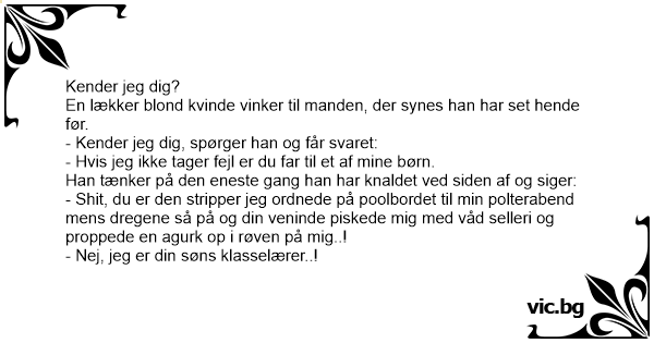En läcker blondin vinkar till mannen, han tycker att han känner igen henne. - Känner jag dig? frågar han. - Om inte jag tar fel så är du far till ett av mina barn? Han börjar fundera på den enda...