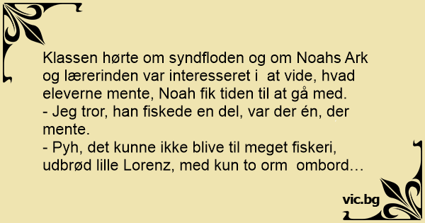 Klassen hørte om syndfloden og om Noahs Ark og lærerinden var interesseret i at vide, hvad eleverne mente, Noah fik tiden til at gå med.