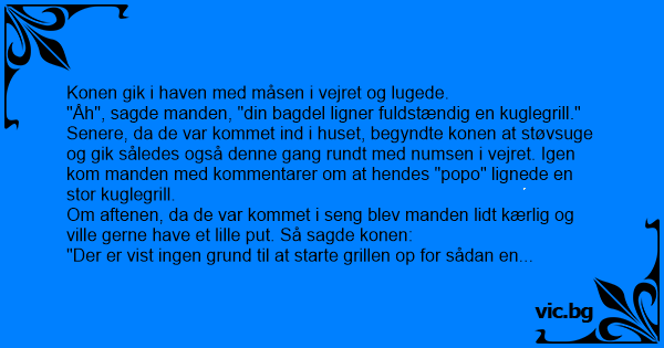 "Åh", sagde manden, "din bagdel ligner fuldstændig en kuglegrill."