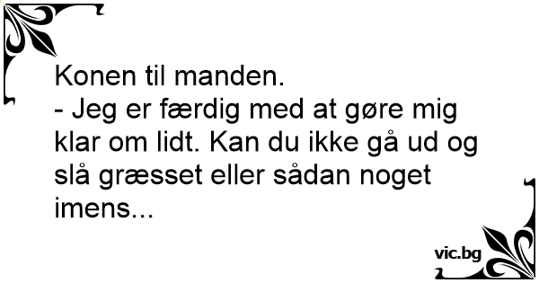 - Jeg er færdig med at gøre mig klar om lidt. Kan du ikke gå ud og slå græsset eller sådan noget imens...