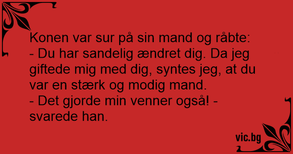 - Du har sandelig ændret dig. Da jeg giftede mig med dig, syntes jeg, at du var en stærk og modig mand.