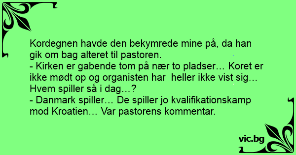 - Danmark spiller… De spiller jo kvalifikationskamp mod Kroatien… Var pastorens kommentar.