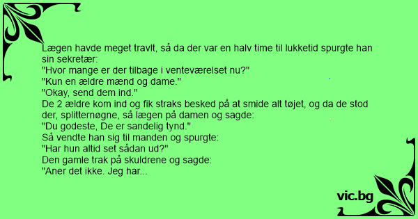 Lægen havde meget travlt, så da der var en halv time til lukketid spurgte han sin sekretær: