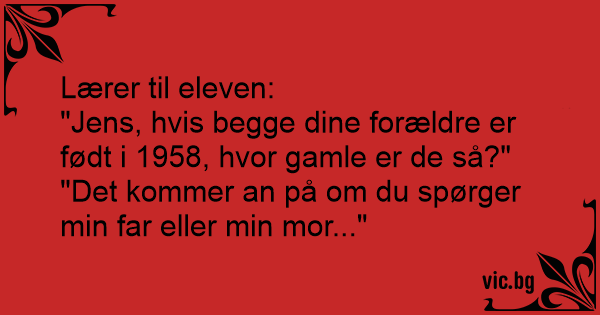 "Jens, hvis begge dine forældre er født i 1958, hvor gamle er de så?"