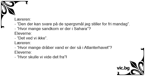 - ”Den der kan svare på de spørgsmål jeg stiller for fri mandag”.
