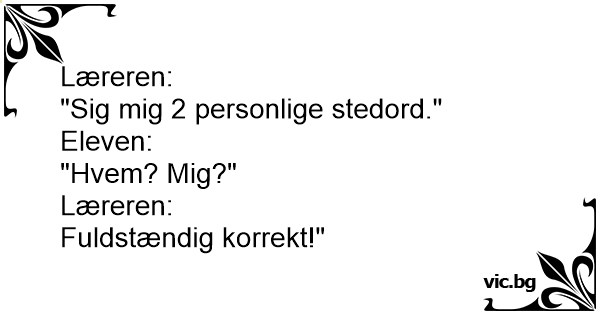 Læreren: – Si to pronomen. Gutten: – Hvem, jeg? Læreren: – Det er helt riktig.