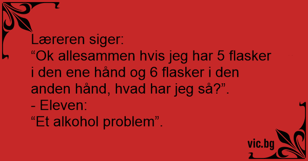 “Ok allesammen hvis jeg har 5 flasker i den ene hånd og 6 flasker i den anden hånd, hvad har jeg så?”.