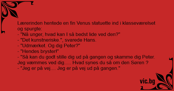 Lærerinden hentede en fin Venus statuette ind i klasseværelset og spurgte: