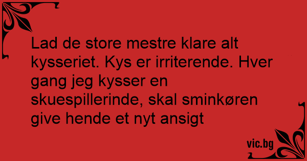 Lad de store mestre klare alt kysseriet. Kys er irriterende. Hver gang jeg kysser en skuespillerinde, skal sminkøren give hende et nyt ansigt