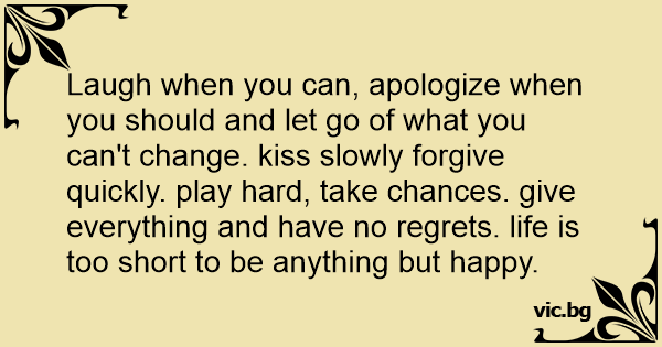 Laugh when you can, apologize when you should and let go of what you can't change. kiss slowly forgive quickly. play hard, take chances. give everything and have no regrets. life is too short to be anything but happy.