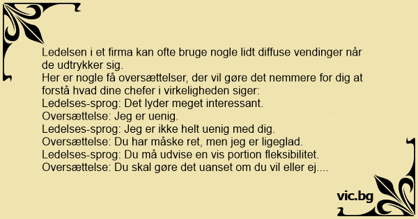 Her er nogle få oversættelser, der vil gøre det nemmere for dig at forstå hvad dine chefer i virkeligheden siger:
