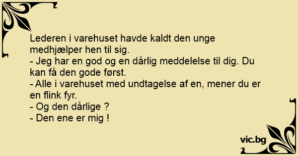 - Jeg har en god og en dårlig meddelelse til dig. Du kan få den gode først.