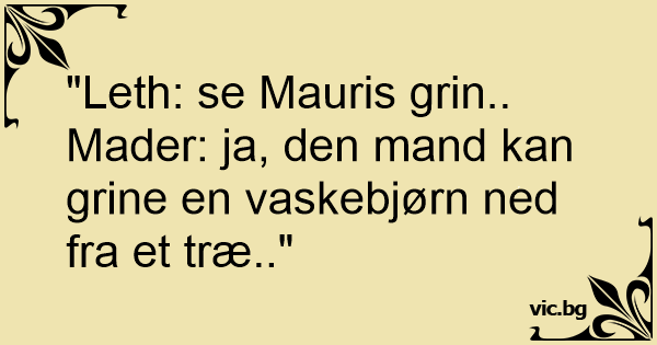 "Leth: se Mauris grin.. Mader: ja, den mand kan grine en vaskebjørn ned fra et træ.."