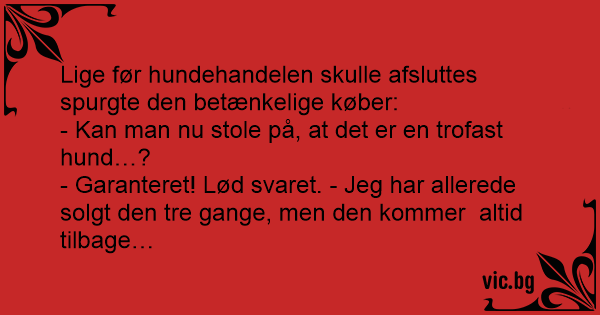 - Garanteret! Lød svaret. - Jeg har allerede solgt den tre gange, men den kommer altid tilbage…