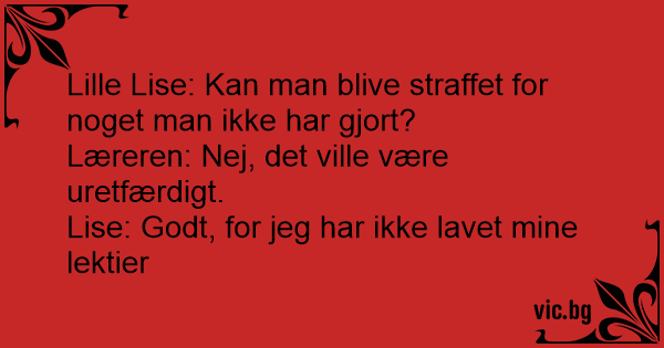 Lise: Godt, for jeg har ikke lavet mine lektier