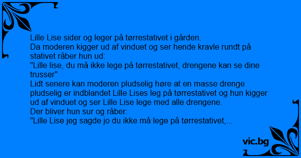 "Lille lise, du må ikke lege på tørrestativet, drengene kan se dine trusser"