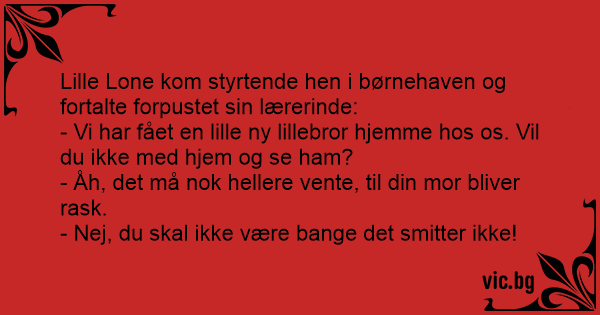 Lille Lone kom styrtende hen i børnehaven og fortalte forpustet sin lærerinde: