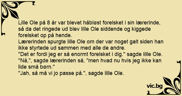 "Nå,", sagde lærerinden så, "men hvad nu hvis jeg ikke kan lide små børn."