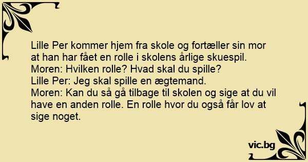 Lille Per kommer hjem fra skole og fortæller sin mor at han har fået en rolle i skolens årlige skuespil.