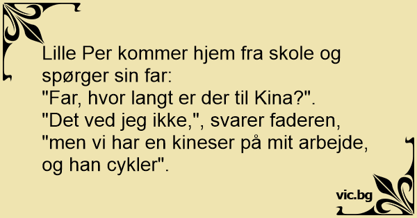 "Det ved jeg ikke,", svarer faderen, "men vi har en kineser på mit arbejde, og han cykler".