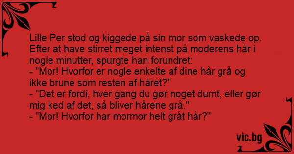 - "Mor! Hvorfor er nogle enkelte af dine hår grå og ikke brune som resten af håret?"