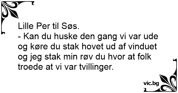 - Kan du huske den gang vi var ude og køre du stak hovet ud af vinduet og jeg stak min røv du hvor at folk troede at vi var tvillinger.