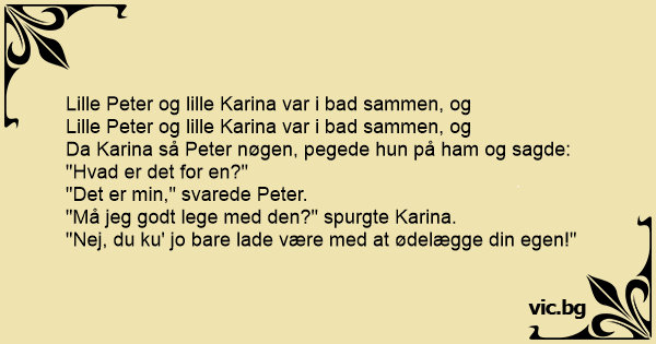 Da Karina så Peter nøgen, pegede hun på ham og sagde: