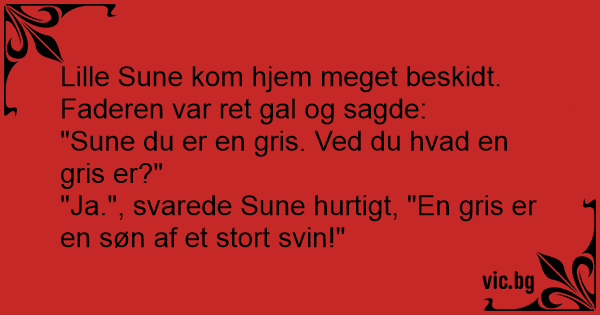"Ja.", svarede Sune hurtigt, "En gris er en søn af et stort svin!"