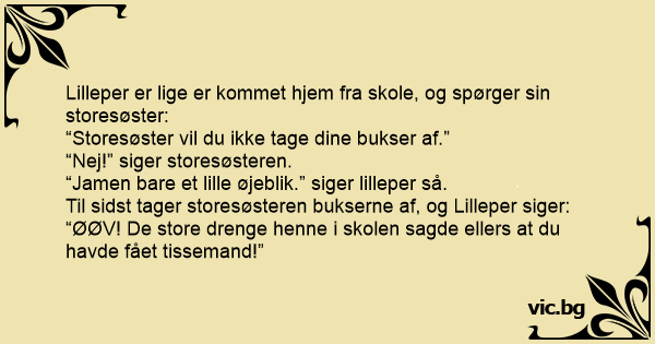 “Storesøster vil du ikke tage dine bukser af.”