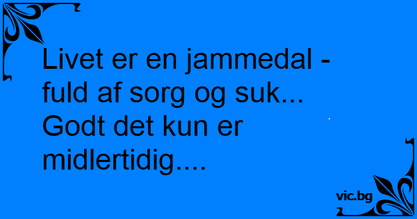 Livet er en jammedal - fuld af sorg og suk... Godt det kun er midlertidig....