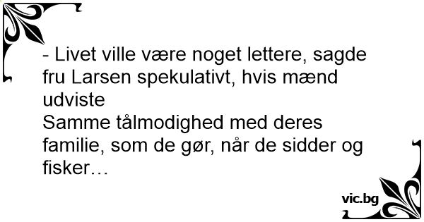 - Livet ville være noget lettere, sagde fru Larsen spekulativt, hvis mænd udviste
