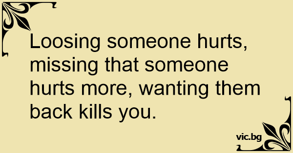 Loosing someone hurts, missing that someone hurts more, wanting them back kills you.