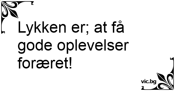 Lykken er; at få gode oplevelser foræret!