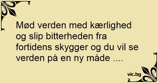 Mød verden med kærlighed og slip bitterheden fra fortidens skygger og du vil se verden på en ny måde ....