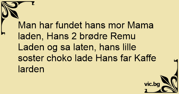 Man har fundet hans mor Mama laden, Hans 2 brødre Remu Laden og sa laten, hans lille soster choko lade Hans far Kaffe larden