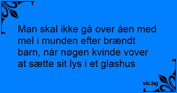 Man skal ikke gå over åen med mel i munden efter brændt barn, når nøgen kvinde vover at sætte sit lys i et glashus