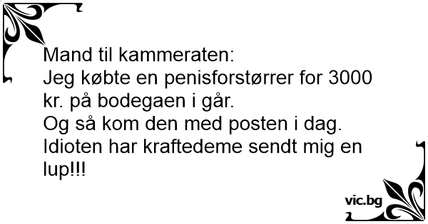 Jeg købte en penisforstørrer for 3000 kr. på bodegaen i går.