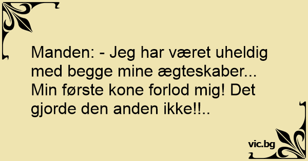 Manden: - Jeg har været uheldig med begge mine ægteskaber... Min første kone forlod mig! Det gjorde den anden ikke!!..