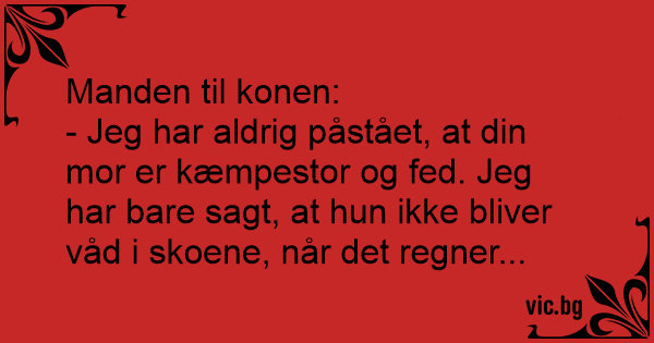 - Jeg har aldrig påstået, at din mor er kæmpestor og fed. Jeg har bare sagt, at hun ikke bliver våd i skoene, når det regner...