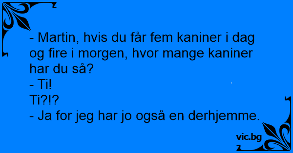 - Martin, hvis du får fem kaniner i dag og fire i morgen, hvor mange kaniner har du så?