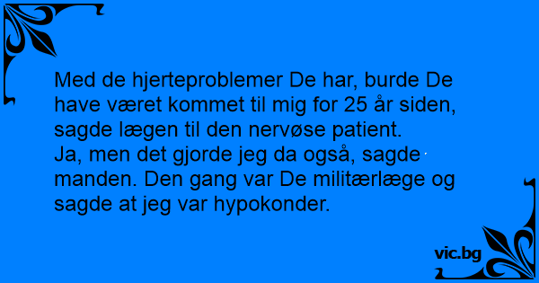 Med de hjerteproblemer De har, burde De have været kommet til mig for 25 år siden, sagde lægen til den nervøse patient.