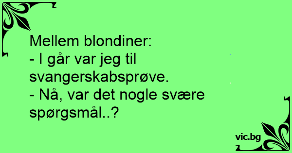 Mellem blondiner:<br />- I går var jeg til svangerskabsprøve.<br />- Nå, var det nogle svære spørgsmål..?