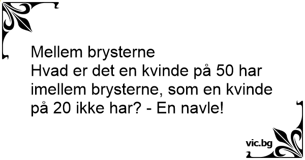 Hvad har en gammel dame mellem brysterne som en ung ikke har? - Navlen!