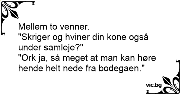 "Skriger og hviner din kone også under samleje?"
