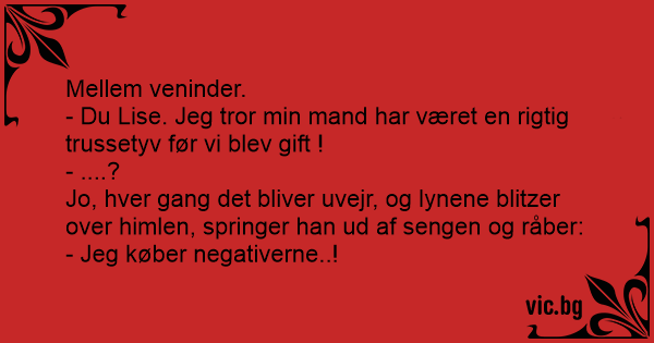 - Du Lise. Jeg tror min mand har været en rigtig trussetyv før vi blev gift !