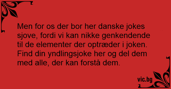 Men for os der bor her danske jokes sjove, fordi vi kan nikke genkendende til de elementer der optræder i joken. Find din yndlingsjoke her og del dem med alle, der kan forstå dem.