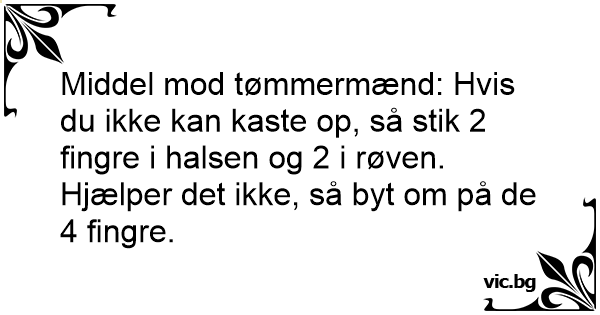 Middel mod tømmermænd: Hvis du ikke kan kaste op, så stik 2 fingre i halsen og 2 i røven. Hjælper det ikke, så byt om på de 4 fingre.
