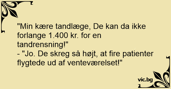 "Min kære tandlæge, De kan da ikke forlange 1.400 kr. for en tandrensning!"