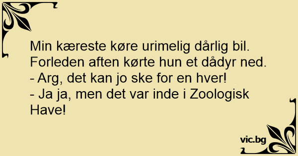 Min kæreste køre urimelig dårlig bil. Forleden aften kørte hun et dådyr ned.