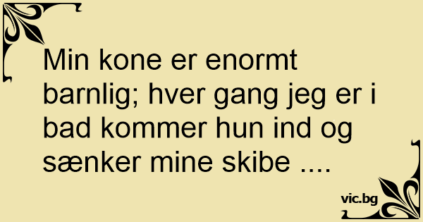 Min kone er enormt barnlig; hver gang jeg er i bad kommer hun ind og sænker mine skibe ....